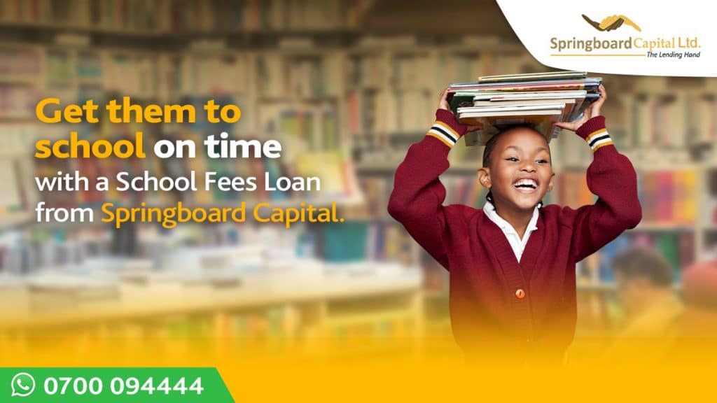 Springboard Capital Ltd has a friendly school fees loan solution that is tailored to meet parents and guardians’ needs to enable and facilitate easy school fees payments. Click here to apply for a school Fees Loan